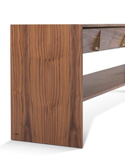 Desenvolvida pensando em aproveitar o potencial dos maquinários da indústria a Timber abusa dos chanfrados na madeira. Os traços contínuos na lateral da peça trazem dinamismo ao desenho. O triângulo na lateral traz o significado deste elemento, força, equilíbrio e harmonia.