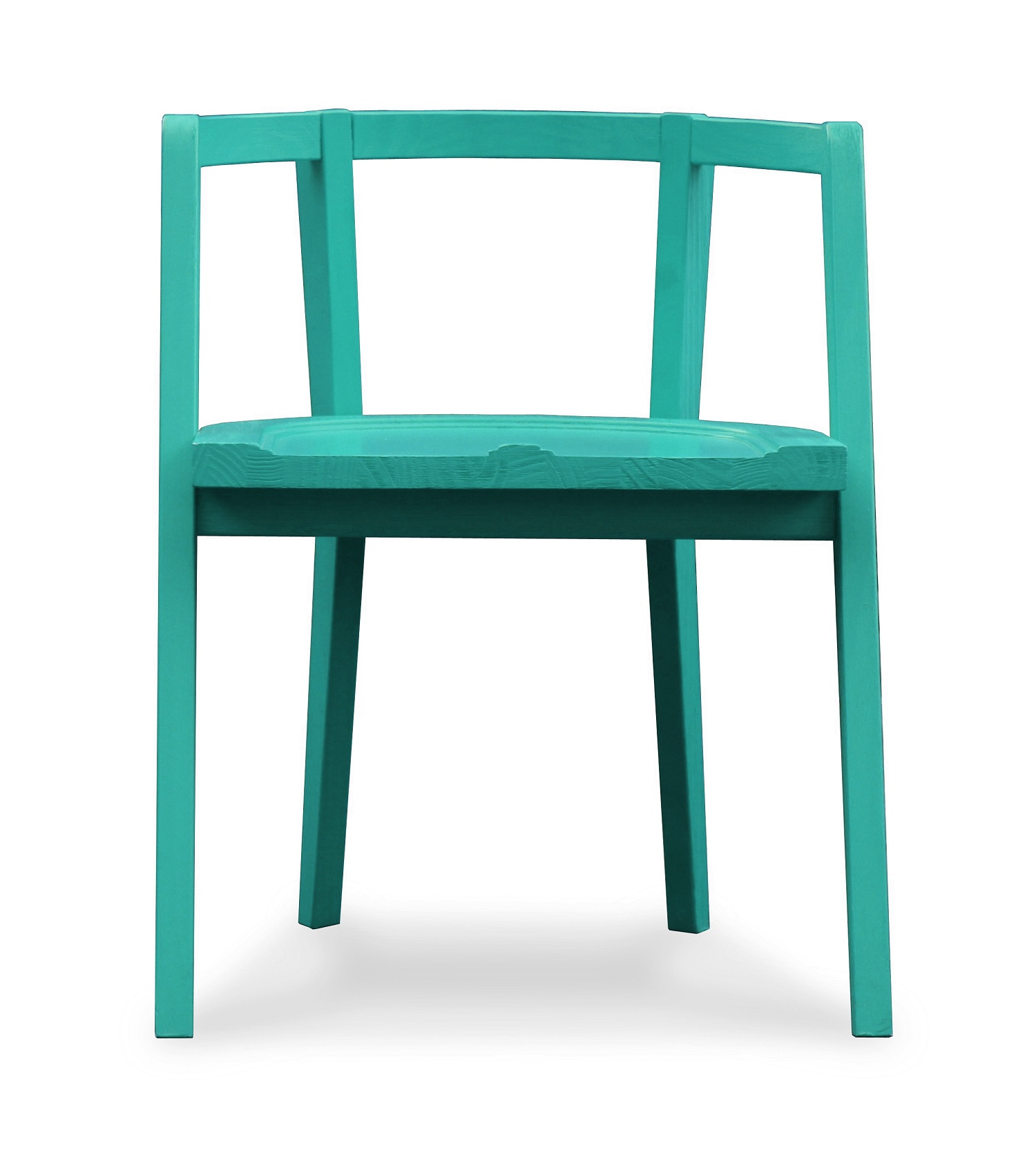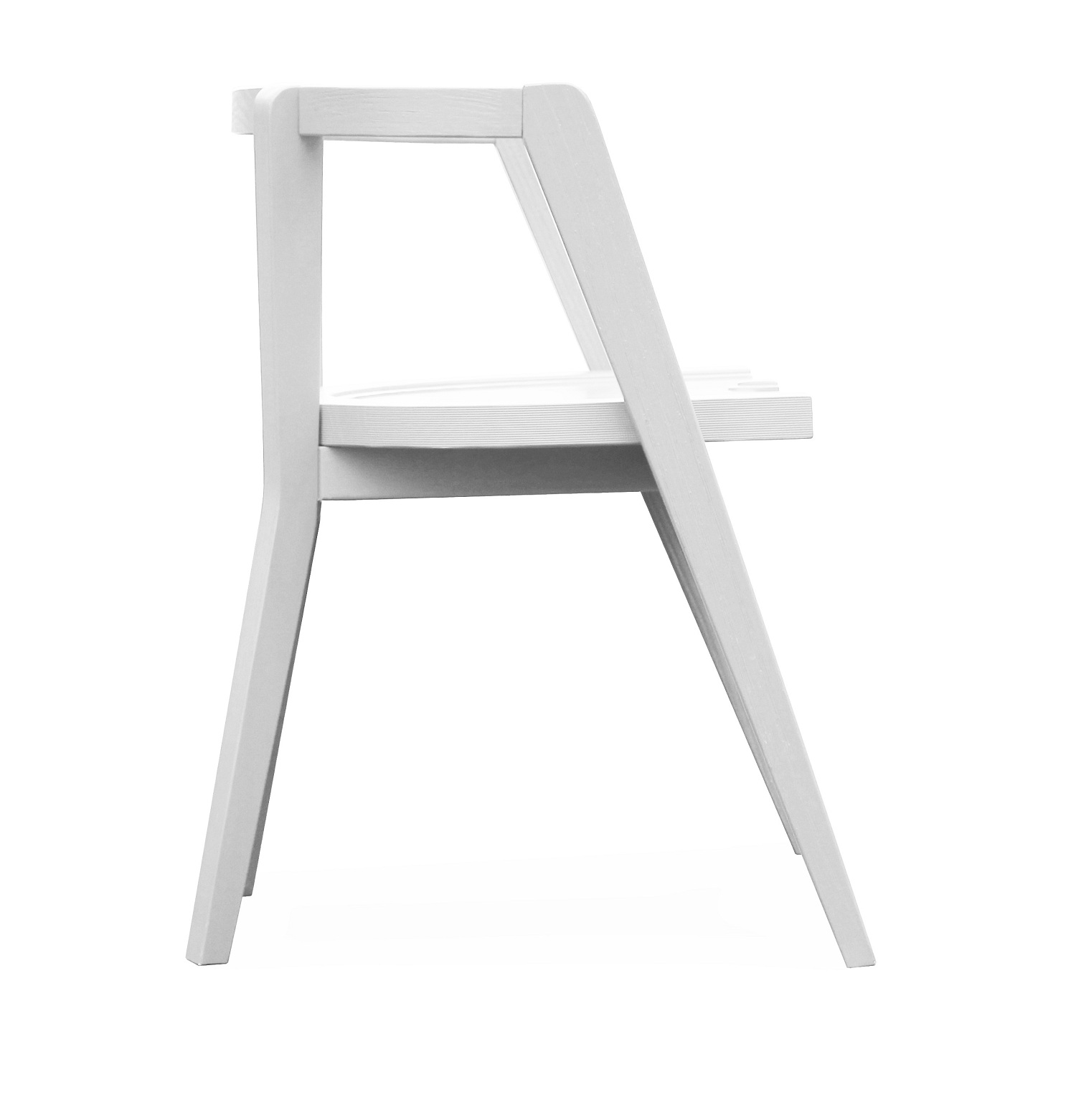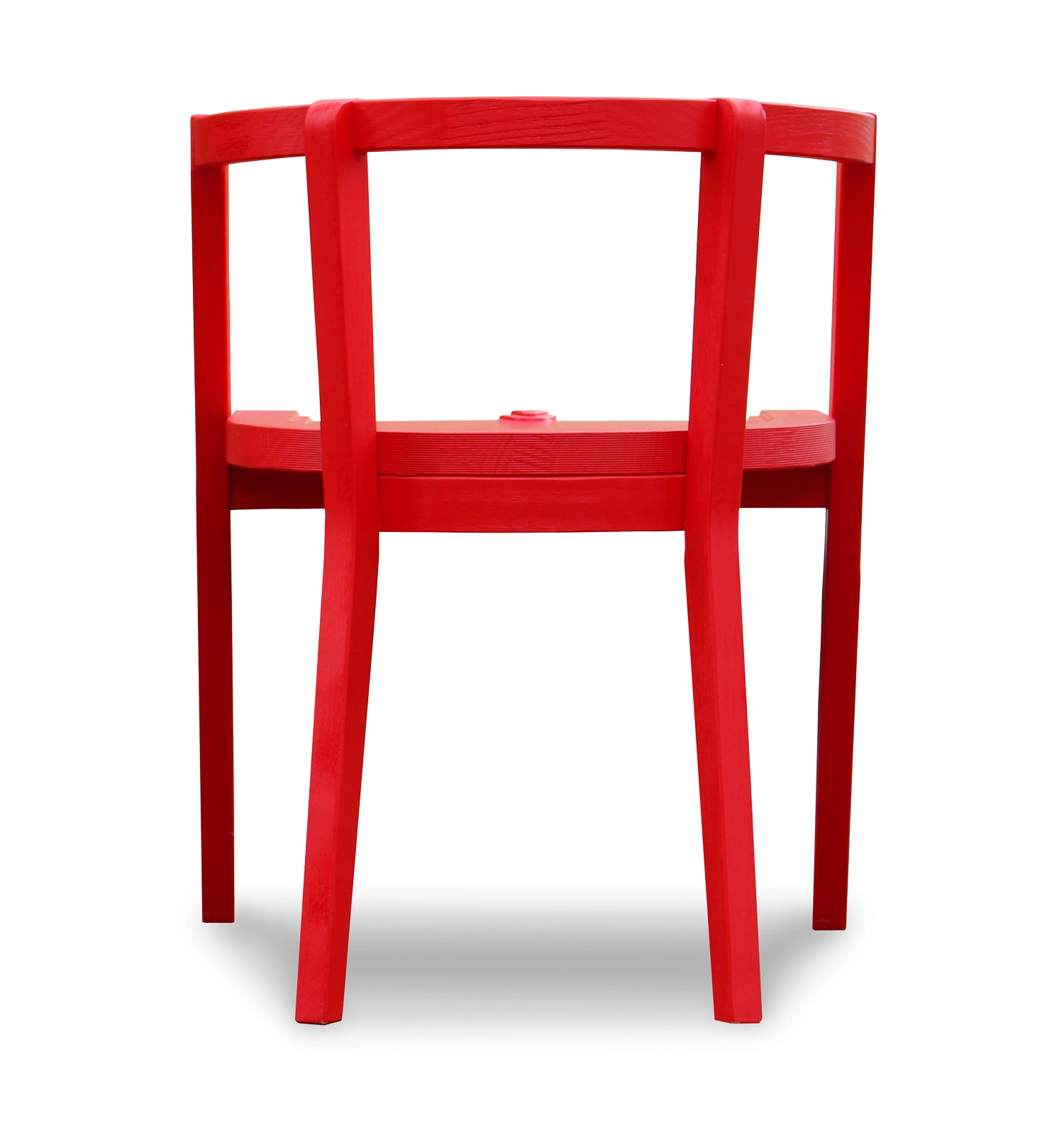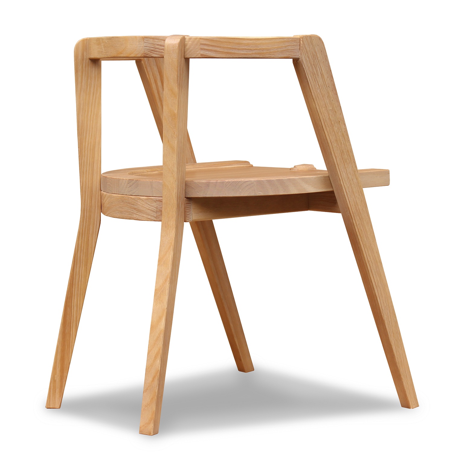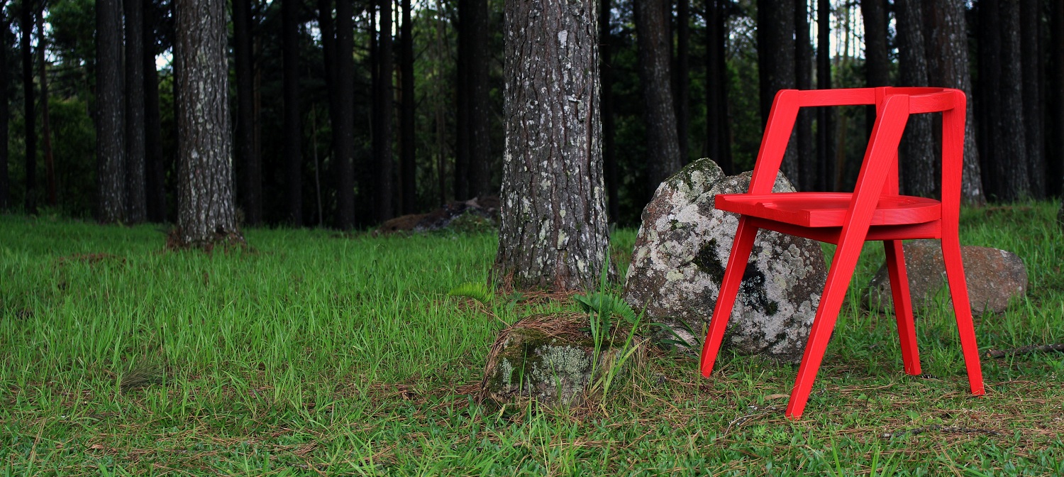 A peça é inteiramente desenvolvida em madeira de reflorestamento, proveniente de florestas com manejo sustentável. A ideia foi criar um produto com uma linguagem descontraída e o mais simples e completa quanto possível, que questione os modelos tão tradicionais de assento e encosto das cadeiras que o mercado oferece, podendo trazer um foco de atenção ao ambiente também como uma peça decorativa e mais irreverente, não apenas sendo um simples objeto para se sentar, mas que possa ser contemplada pelo olhar.