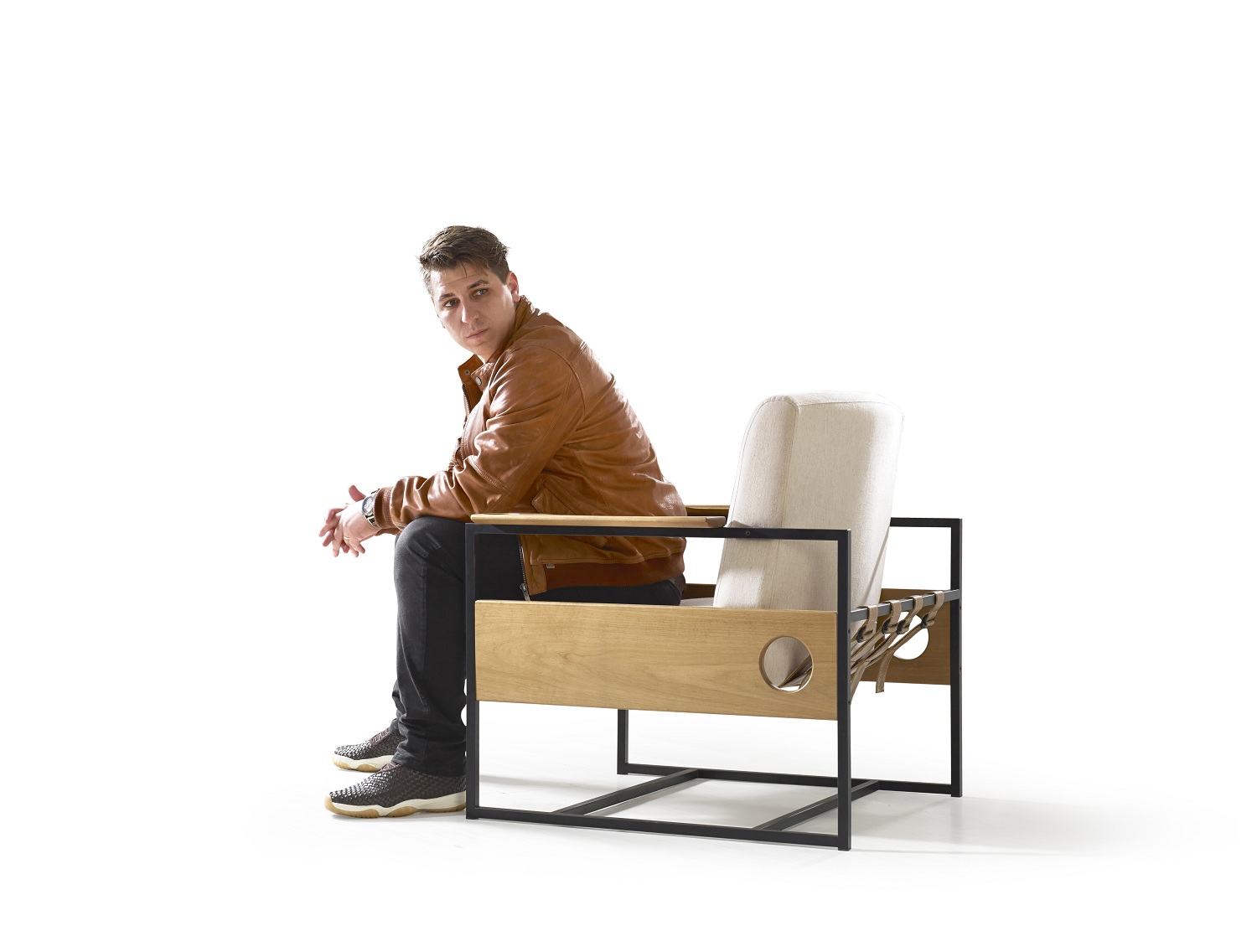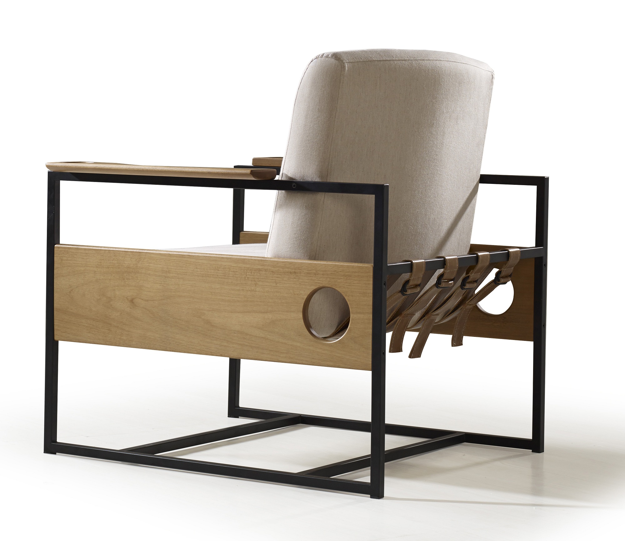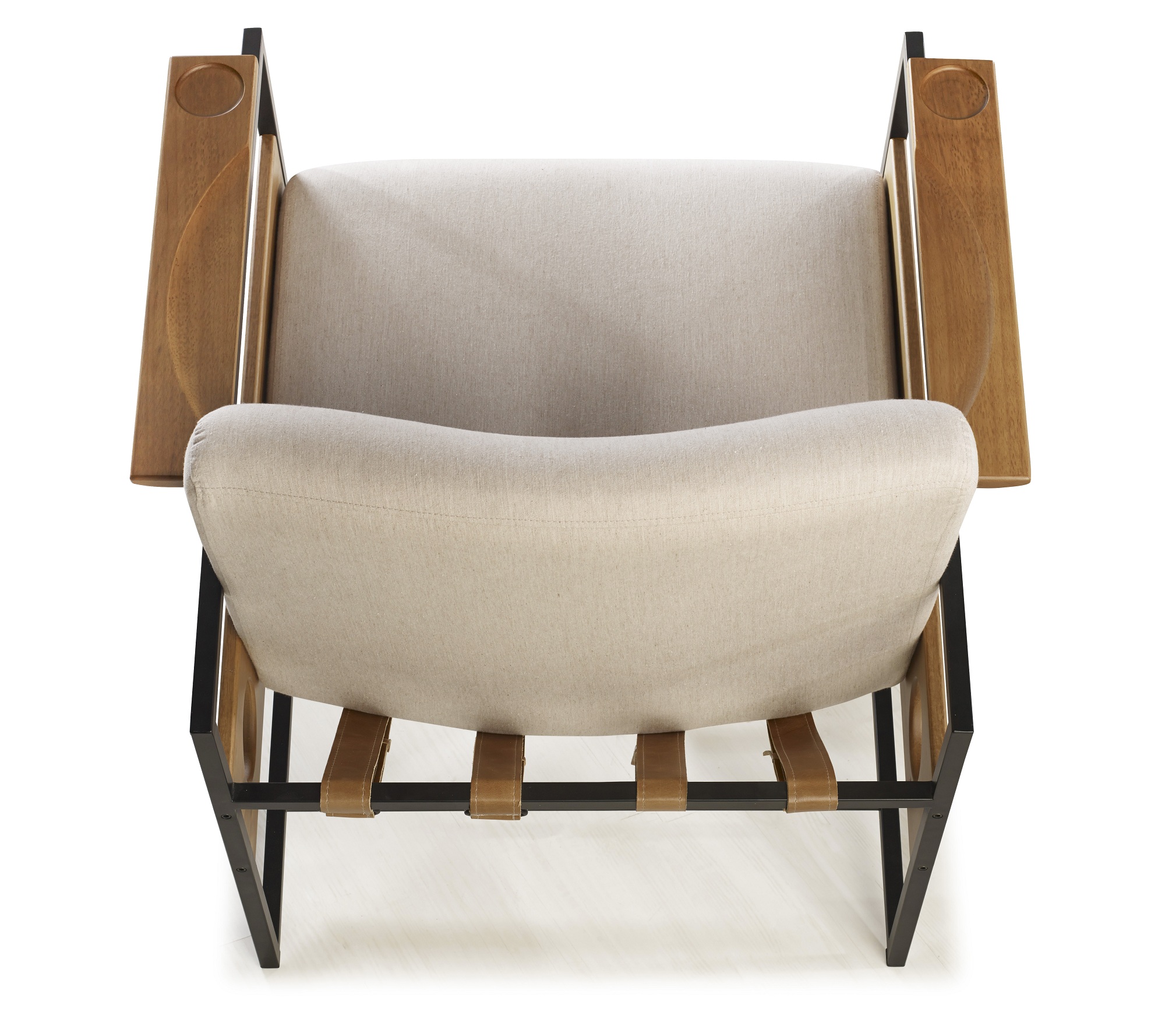 A poltrona Trentini é fruto de um estudo de proporções, a ideia principal estava e um desenho com poucas linhas, descrevendo a peça na sua visão lateral, temos basicamente um retângulo de metal cortado por uma estrutura em L que forma encosto e assento. Os materiais foram colocados em volumes a deixar a produto harmonioso, desde a espessura do metal, ao estofamento, madeira e cintas de couro nas costas, cada detalhe, como a fivela das cintas foi pensando e executado para oferecer um produto com um desenho autêntico.