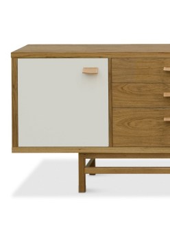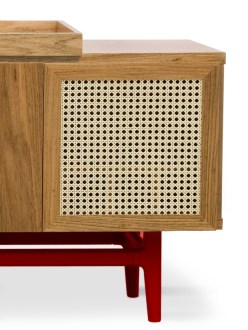 O aparador busca ser versátil e personalizável, as estruturas de gavetas são encaixadas, assim como as bandejas, podendo a peça ficar mais alta, usando as gavetas em cima; mais despojada, com uma disposição alternativa, e estilo bar com a bandeja e prateleira na parte superior. Há uma prateleira inferior em palha, que é presa a estrutura com um espaçador, que faz com que ela pareça flutuar os pés. A estrutura da madeira é relativamente simples, tem por base ripas, fixadas por […]
