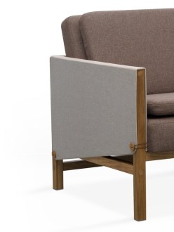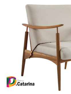 Elaborada em madeira de Açoita na coloração natural, com almofadas duplas em linho e debrum em couro, esta peça busca valorizar os elementos estruturais, principalmente nas costas da poltrona, onde há um espaço vazado, fazendo com que os pés dêem a impressão de estar dando suporte ao encosto da poltrona. A cinta de couro escuro que “amarra” a poltrona é presa nas almofadas com fivelas (de onde se originou o nome da peça, por se assemelhar a uma cela de […]