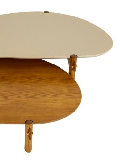 A mesa brinca com o equilíbrio, leveza e estrutura. Os pés estão todos em uma das extremidades da peça; um deles apóia verticalmente, já os outros dois se alongam em direção as outras duas extremidades, deixando ainda um ponto do tampo livre, conferindo o balanço ideal aos elementos que compõe o produto. Os dois apoios que saem dos pés alongados, atribuem um aspecto estrutural e brincam com os espaços vazados entre os pés, sempre em formato de triângulos, que […]