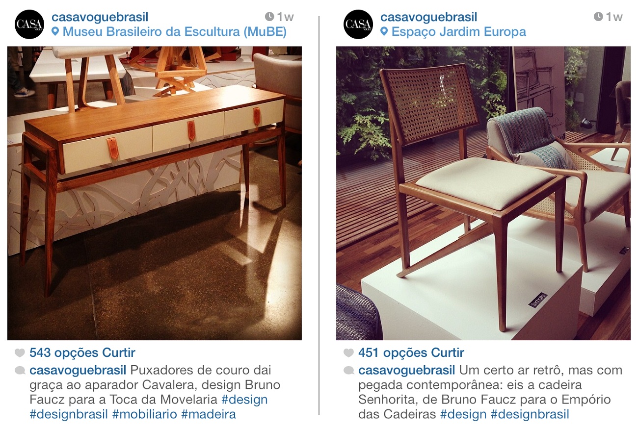 Publicação Instagram Casa Vogue, respectivamente primeira e terceira peças mais curtidas das postagens da revista durante o período de eventos de design de mobiliário em SP 10 a 15/02 – Fevereiro 2014.