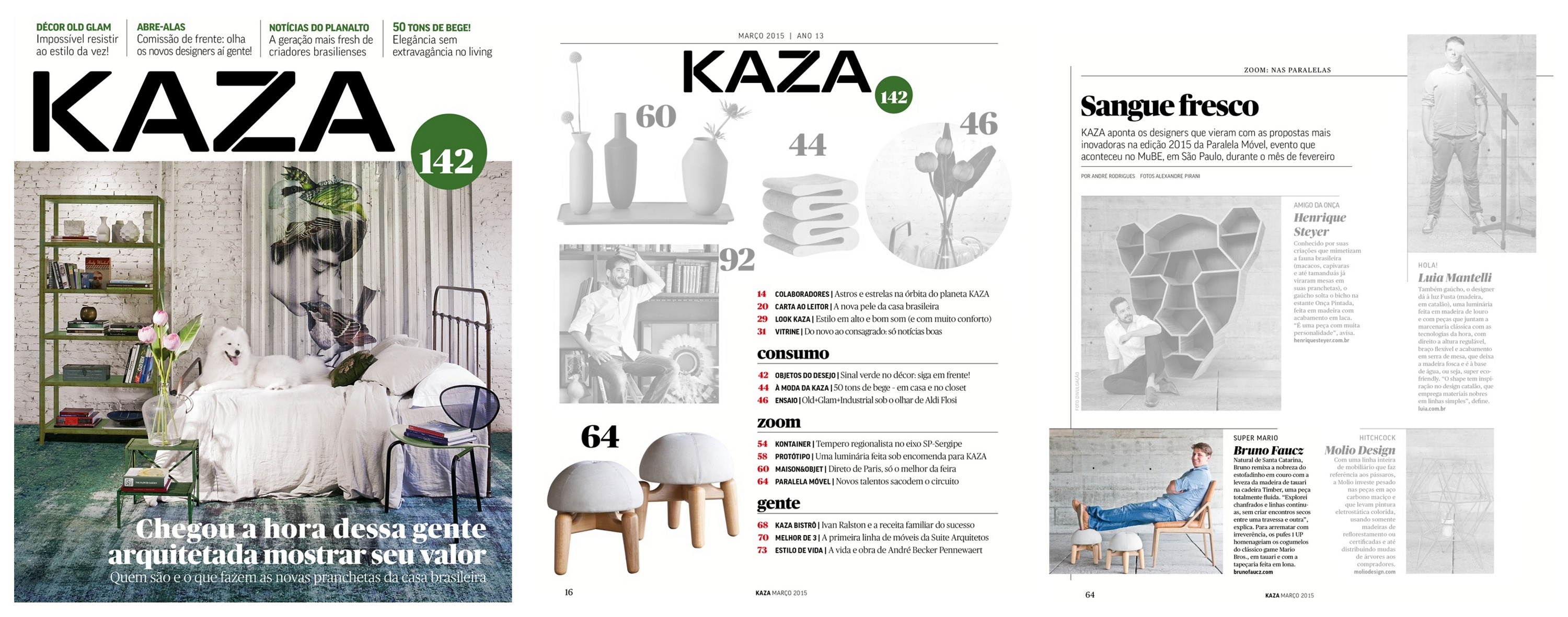Publicação – Setembro 2015, Revista Kaza. Poltrona Patagônia Saccaro e publi Breton, poltrona Barão.